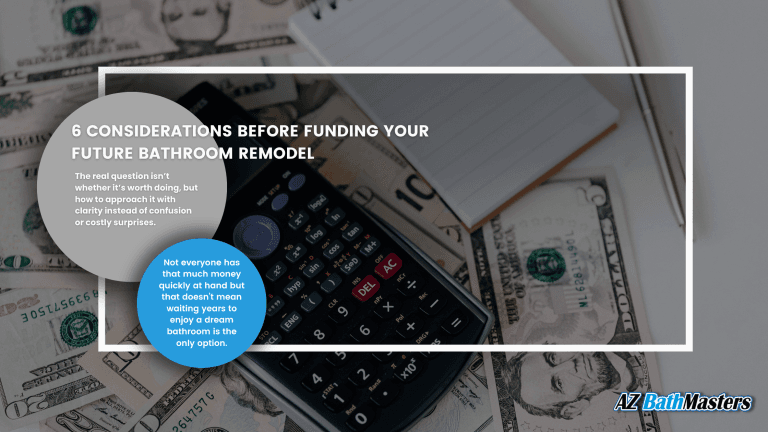 Not everyone has that much money quickly at hand but that doesn’t mean waiting years to enjoy a dream bathroom is the only option. Many homeowners spread the investment over time by pursuing a home loan. At AZ BathMasters, our financing partners may provide (well-qualified) clients with payment plans that can begin as low as $200 per