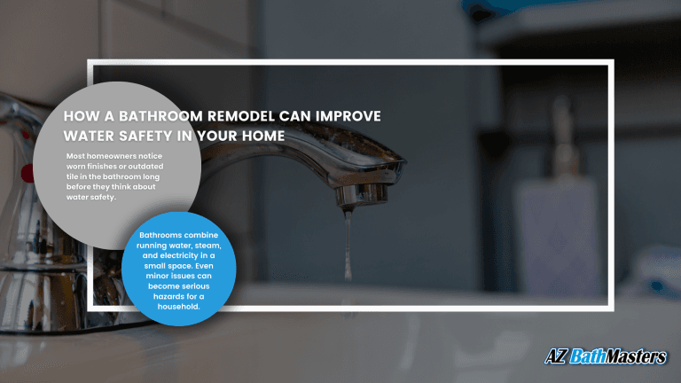 A water-safe bathroom reduces the risk of falls, protects your home’s structure, and provides a healthier environment for your family. If you want to plan a safety-centered remodel that fits your home and budget, you can contact AZBathMasters today or schedule a bathroom remodel consultation to discuss your goals with a local specialist.
